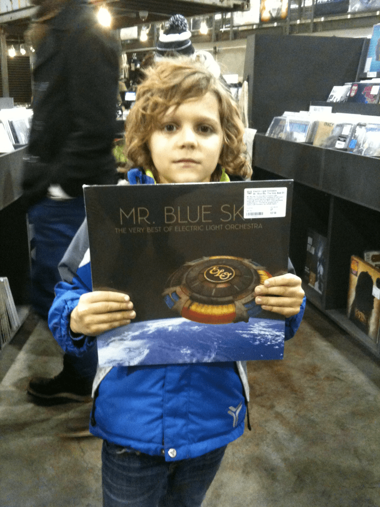 Here is a pic I took back in my record store days in ye olde 2014. I noticed this young lad walking around with a Mr.Blue Sky LP, got excited and asked his Dad if I could take a pic. I hope he loved the album enough to dig into the catalog and ultimately leave the re-recorded versions behind. But it’s okay if he didn’t.