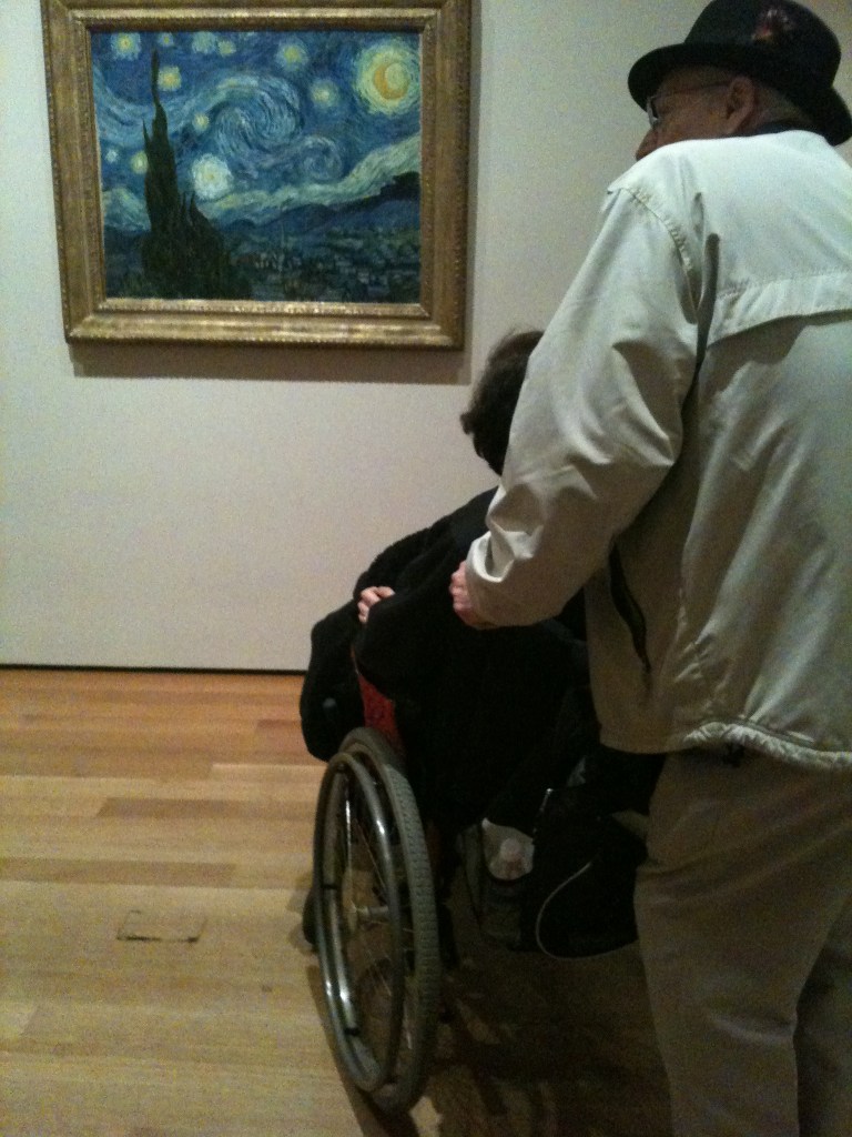 I took the pic above about 10 years ago at MOMA, of this couple spending a minute with “Starry”. Just before I took it, the companion of the woman in the wheelchair had pushed her up next to it and taken a photo of her smiling alongside it. She was ecstatic. Her companion then took her to view it from the front where she stared at it for a few minutes with complete, unabashed love. It was beyond moving and nearly made my heart explode (okay, I almost cried but held on and thankfully spared everyone). To this day, whenever I hear Van Gogh’s name, this is the first thing that pops in my head. Right, I hope you are feeling as misty as me right now.